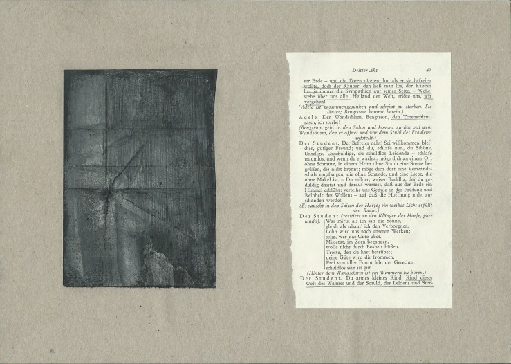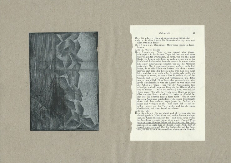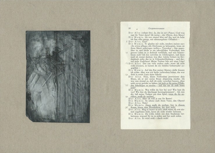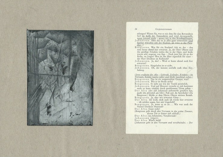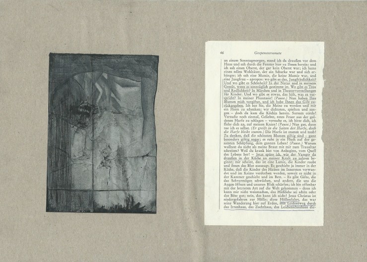 Gespenstersonaten (Ghost Sonatas) 15 tables (A4) of book pages (A6) and drawings (A6, pencil, ink and fine liner) Exhibited at the Open Days of the Academy of Fine Arts January 2013